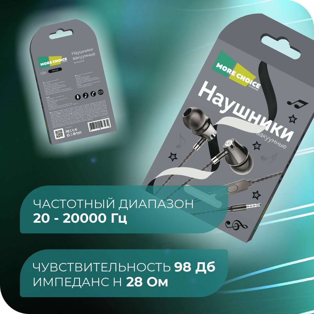Наушники MORE CHOICE G26 проводные, вакуумные, 1,1м, черный