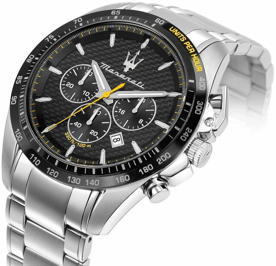 Лучшие цены. Часы наручные Maserati R8873612042. Наручные часы Maserati из коллекции TRAGUARDO. Мужские кварцевые часы с хронографом от известного итальянского бренда Maserati. Корпус стальной диаметром 45мм. Черный циферблат закрыт минеральным стеклом устойчивым к мелким механическим повреждениям. Стальной браслет с застёжкой клипсой. Водозащита 100м. Гарантия на часы 2 года. В комплект входит фирменная упаковка, гарантийный талон и инструкция на русском языке. Магазины в вашем городе.