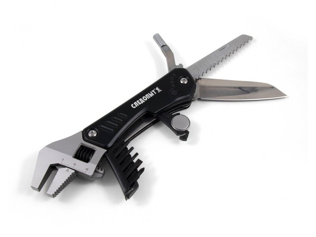 Лучшие цены. Артикул № 914779 Мультитул Следопыт предназначен для выполнения различных работ в быту и на природе. За удобство использования отвечают небольшие габариты и вес. Универсальность данной модели обеспечена большим количеством выполняемых функций. Особопрочная сталь отвечает за продолжительный срок службы. Магазины в вашем городе.