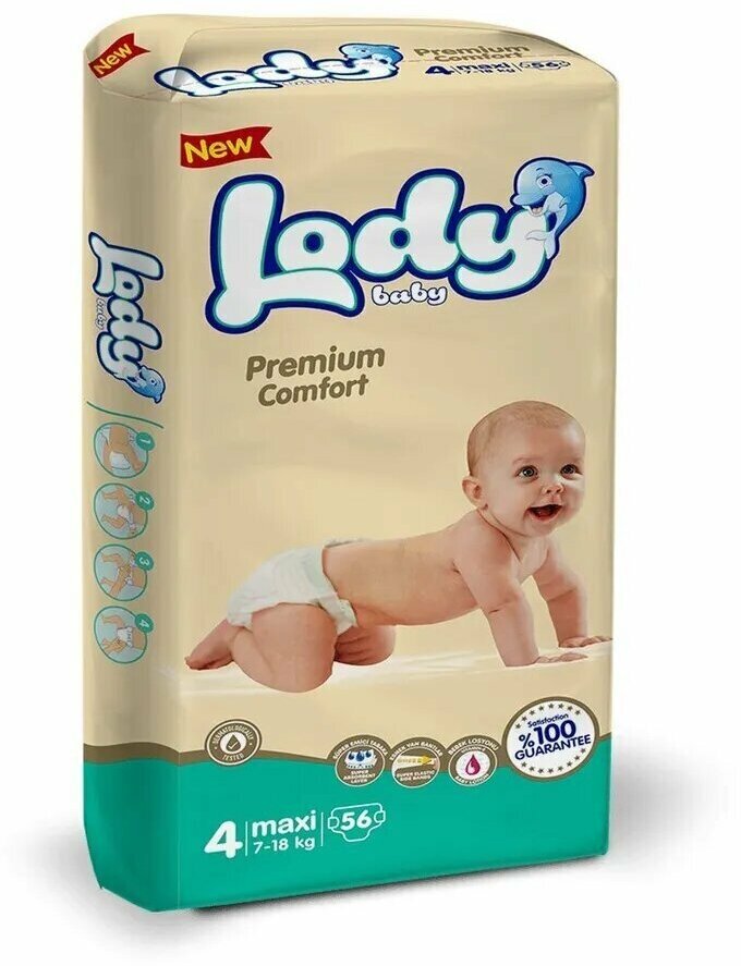 Подгузники (памперсы) Детские подгузники Lody Baby, Premium comfort, размер 4 (MAXI) в упаковке 56 шт. (7-18 кг)