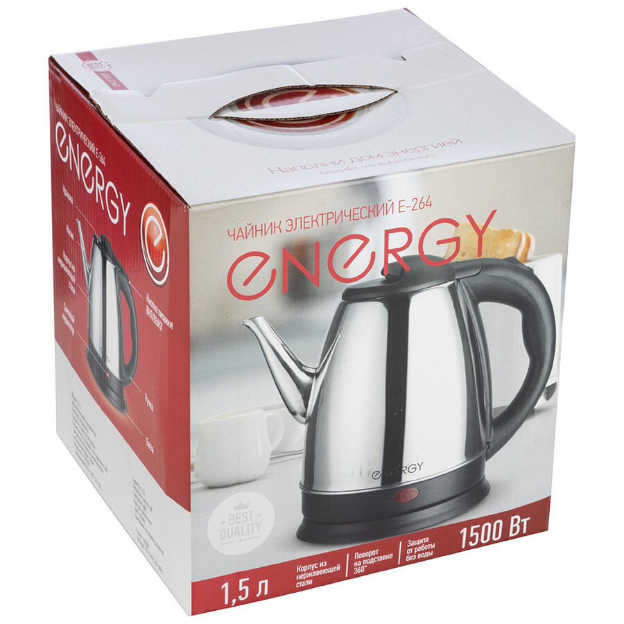 Чайник Электрический 1.5Л 1500 ВТ Диск Нерж Сталь Energy Е-264 164130