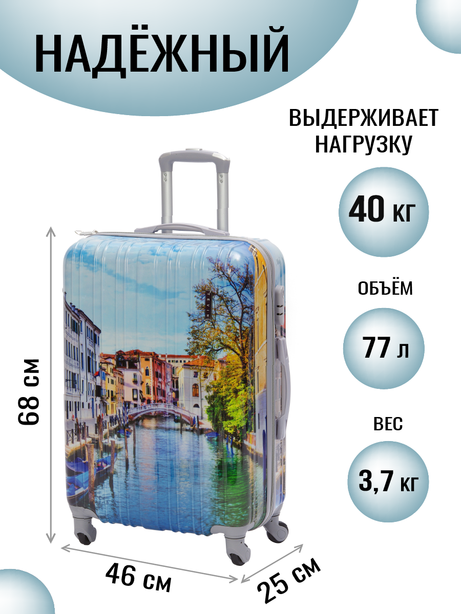 Чемоданы Чемодан на колесах дорожный средний багаж на двоих для путешествий семейный m+ Тевин размер М+ 68 см 77 л легкий 3.7 кг прочный поликарбонат рисунок