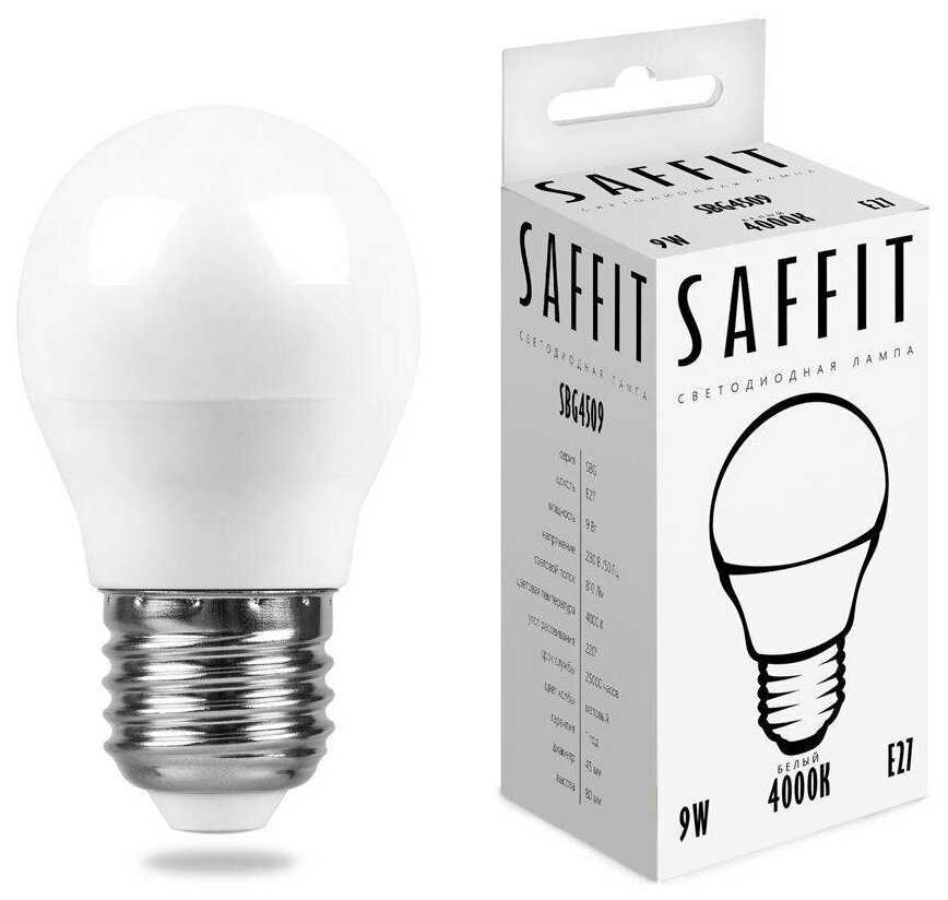 Лампа светодиодная SAFFIT SBG4509 Шарик E27 9W 4000K, 55083