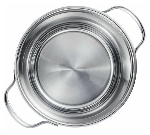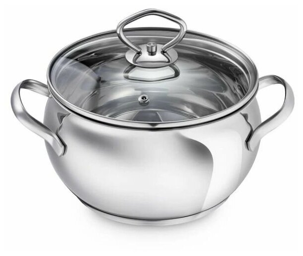 Лучшие цены. Кастрюля из нержавеющей стали со стеклянной крышкой. Твердая стальная поверхность прочна и устойчива к деформации. Нержавеющая сталь не вступает в реакцию с кислотами и щелочами даже при очень высоких температурах. Можно мыть в посудомоечной машине. Подходит для любых видов плит. - Объем, л: 2,8. - Состав: кастрюля со стеклянной крышкой. - Толщина стенок, полировка: зеркальное полирование. - Толщина и характеристика дна: многослойное термораспределительное дно. - Материал ручек: нержавеющая сталь 18/10. Магазины в вашем городе.