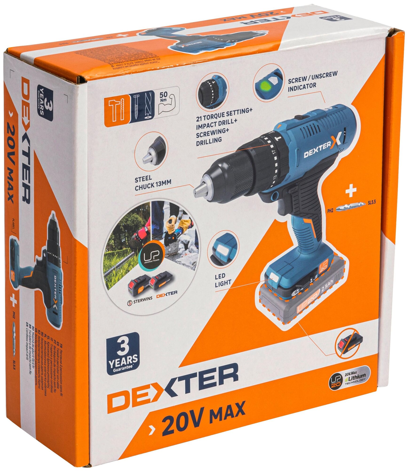 Дрели и шуруповерты Дрель-шуруповерт ударная аккумуляторная Dexter 20VID2-50A.1, 20 В Li-ion, без АКБ и ЗУ