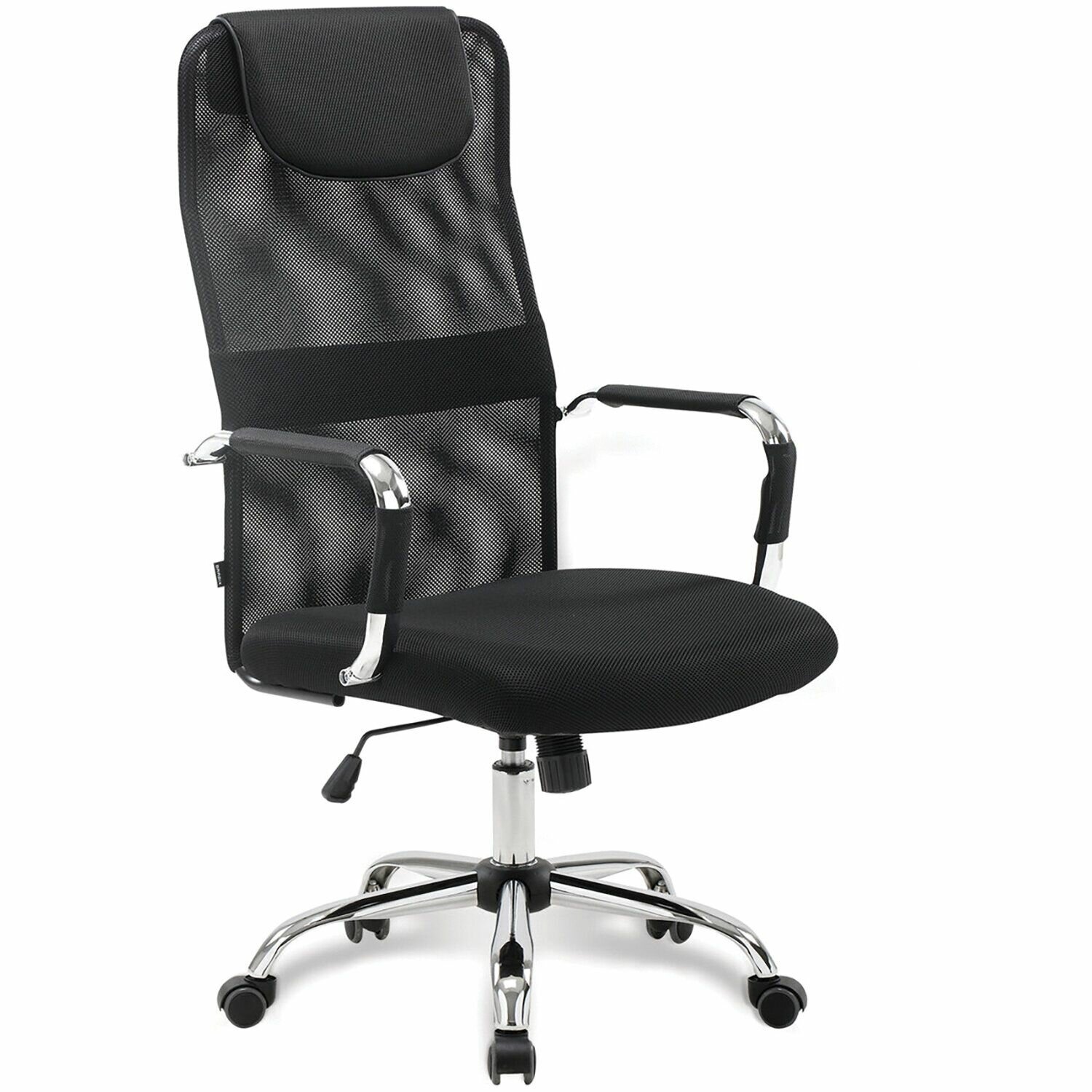 Кресло офисное BRABIX "Fit EX-514", с подголовником, хром, черное, 531949 (531949)