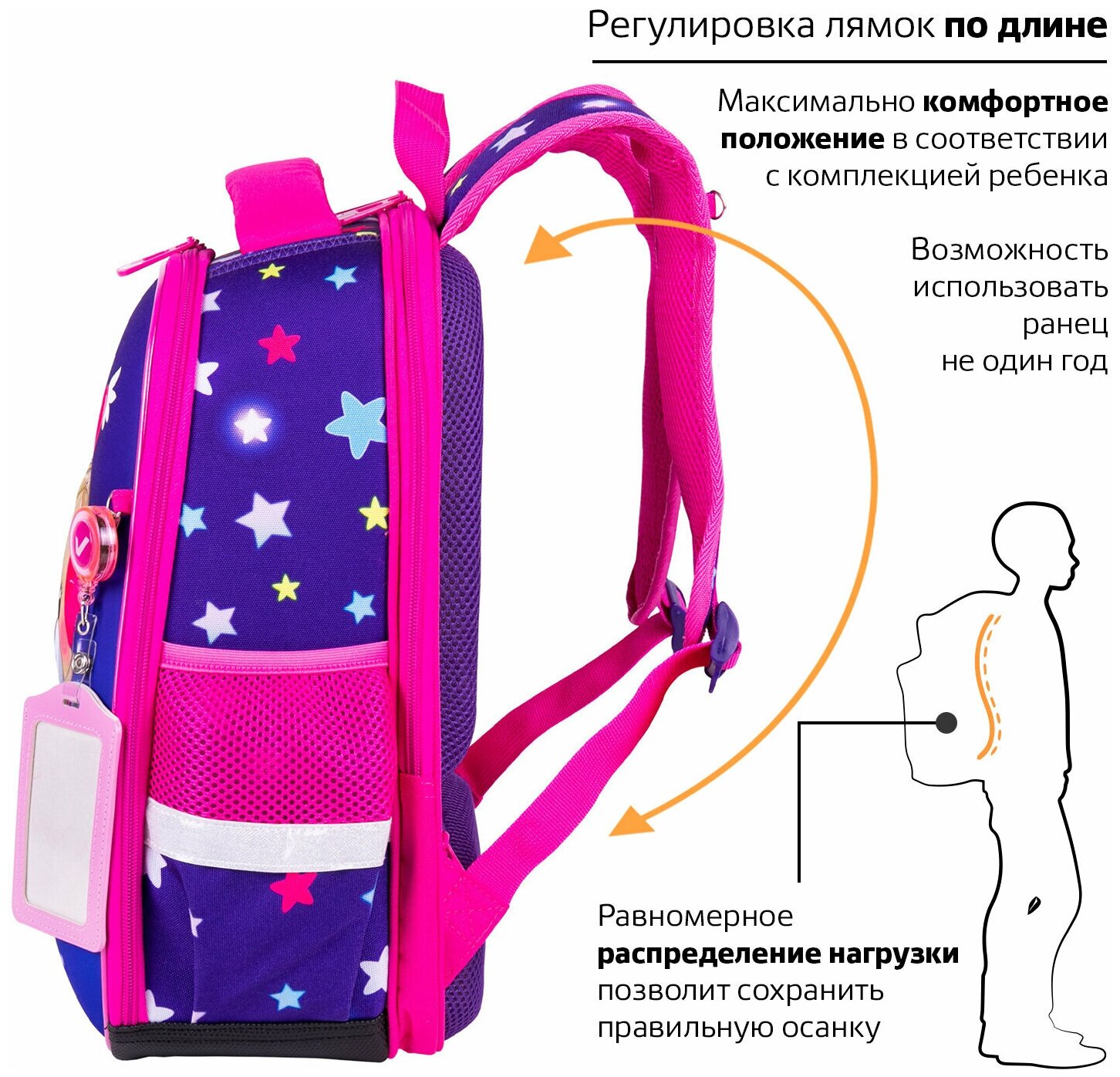Рюкзаки Ранец / рюкзак / портфель школьный для девочки первоклассницы Brauberg Fit для начальной школы, 2 отделения, 3D-панель, 38х27х14 см, 270616