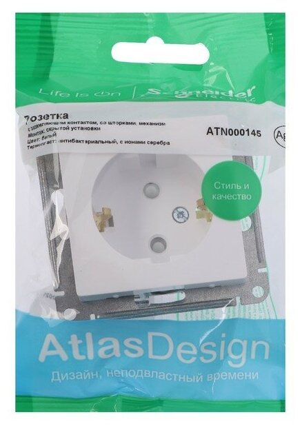 Розетки Розетка электрическая с заземлением, со шторками, 16А (белый) Atlas Design Systeme Electric, ATN000145