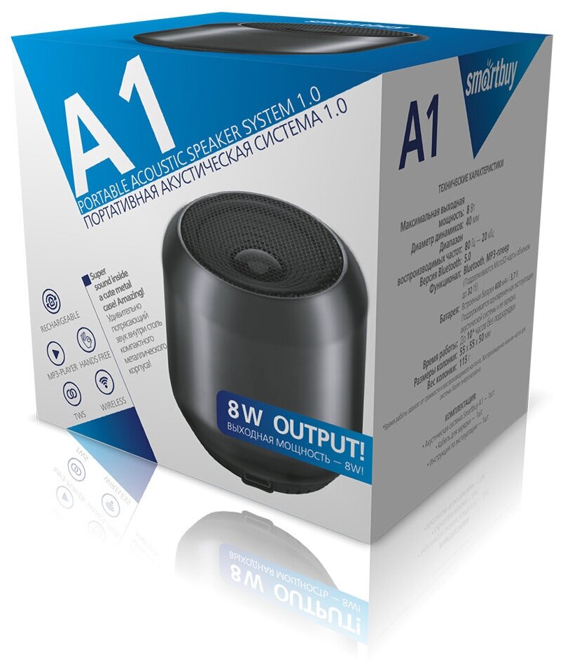 Портативная акустическая система 1.0 Smartbuy A1, ультра компакт, металл, 8Вт, BT/Mp3 (SBS-5260)