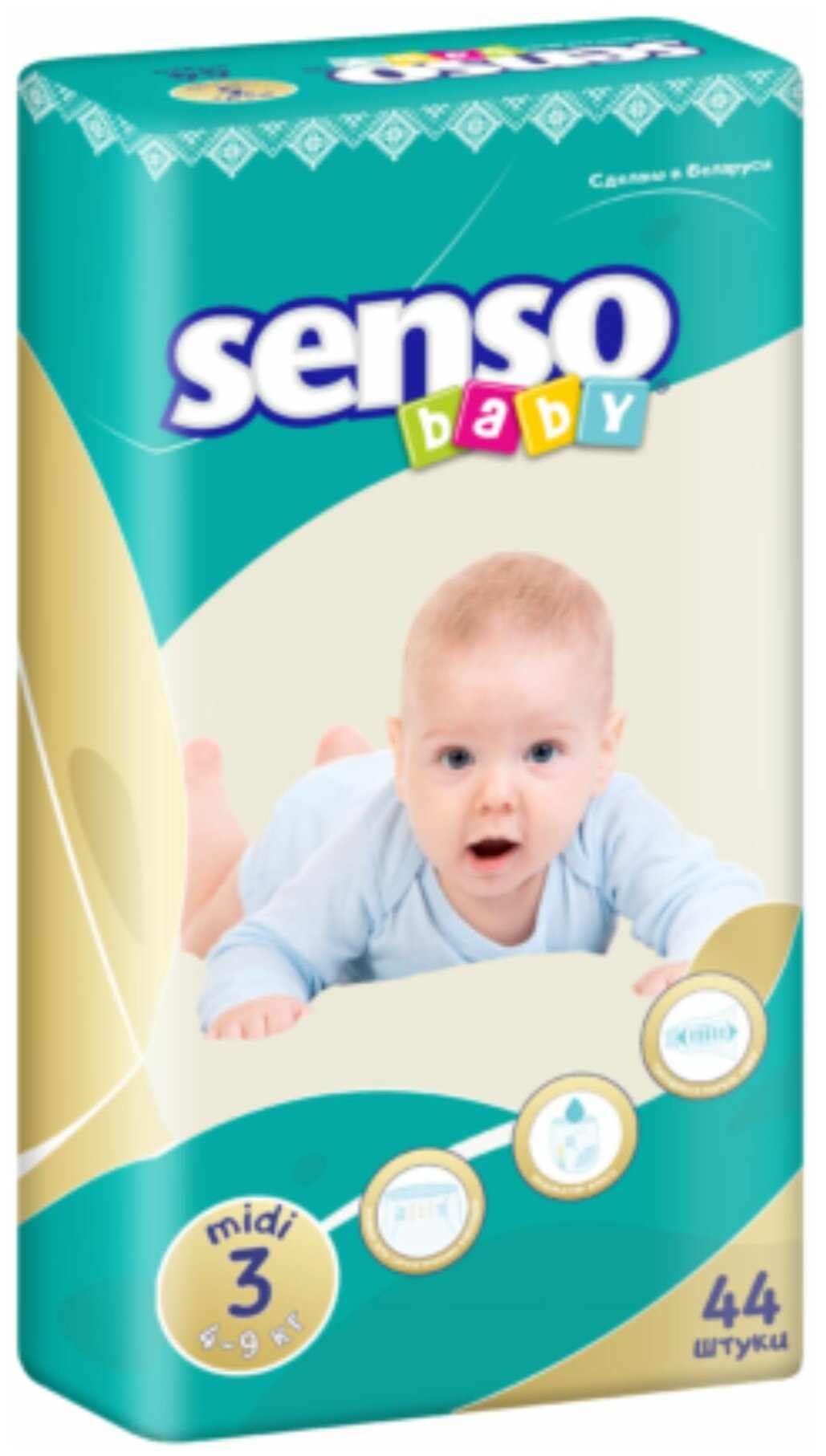 Подгузники Подгузники для детей "SENSO BABY" с кремом - бальзамом размер B3 MIDI (4 - 9 кг) 44 шт.