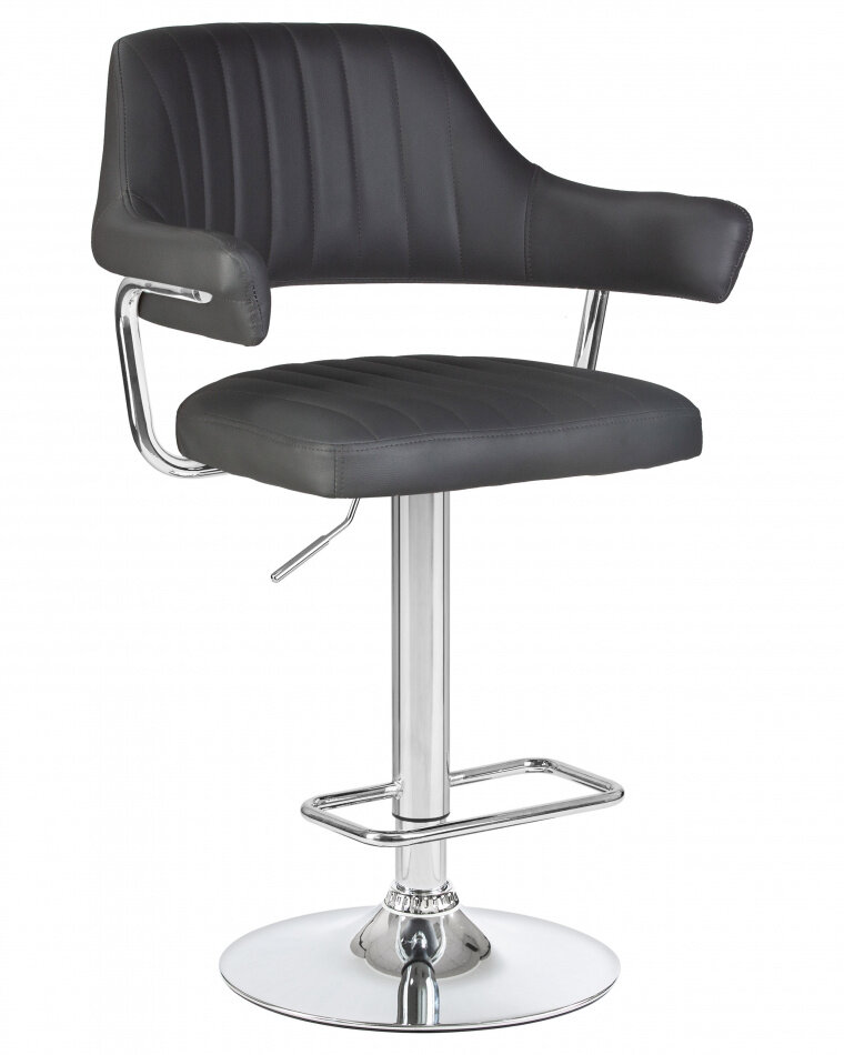 Лучшие цены. Барный стул с подлокотниками Charly от компании DOBRIN сделан в современном стиле. Благодаря использованию в отделке классических цветов он может без проблем вписаться практически в любой интерьер. Высокая металлическая ножка с подставкой для ног имеет массивное дисковое основание, что делает конструкцию устойчивой. Гладкая хромированная поверхность способствует легкому удалению загрязнений. Сидение с удобной спинкой и оригинальными подлокотниками имеет прочную и долговечную обивку из искусственной кожи. Магазины в вашем городе.