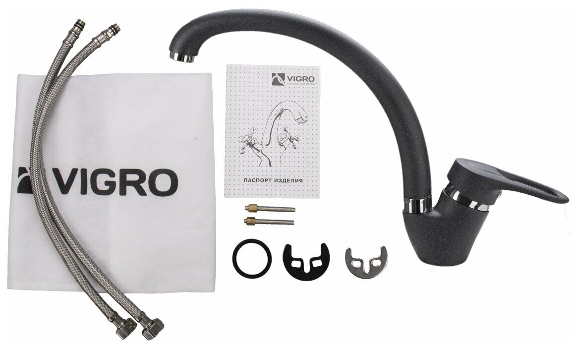 Лучшие цены. Смеситель для кухни VIGRO VG901 грей имеет современный дизайн, прост в установке и использовании. Мытье посуды и кухонной раковины будет происходить легко и просто. Смеситель для равковины выполнен из высококачественной латуни, что обеспечивает его стойкость к перепадам давления и температуры, тем самым подчеркивает свою долговечность. Подводка для воды и крепеж в комплекте. Кран для кухни данной коллекции подходит для разных интерьеров и типов моек. Магазины в вашем городе.