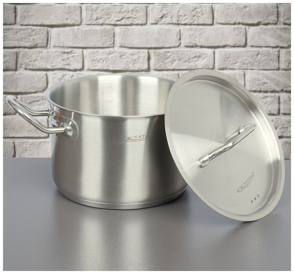 Кастрюля Кастрюля сталь, 3 л, с крышкой, крышка сталь, Катунь, Общепит, КТ-ОБ-03, металлик