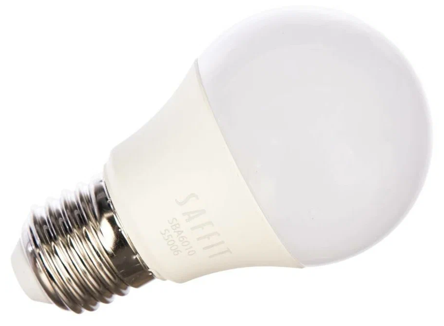 Лучшие цены. Лампочка светодиодная Saffit 10Вт 230V E27 6400K A60, SBA6010, 55006 - является идеальным вариантом энергоэффективной замены классических ламп накаливания и люминесцентных ламп. Колба лампы имеет грушевидную форму с матовым покрытием, которое способствует мягкому и равномерному распределению света.Совместимость с выключателем с подсветкой. Магазины в вашем городе.