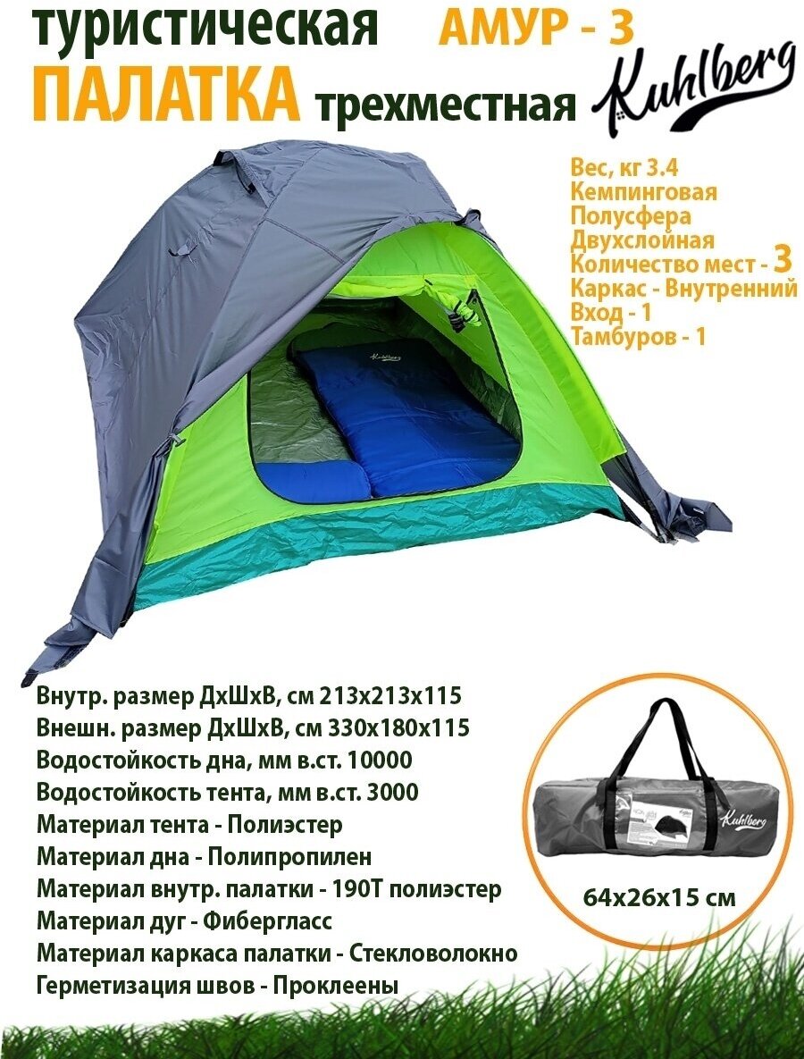 Палатки Палатка туристическая KuhlBerg "Амур -3" трёхместная