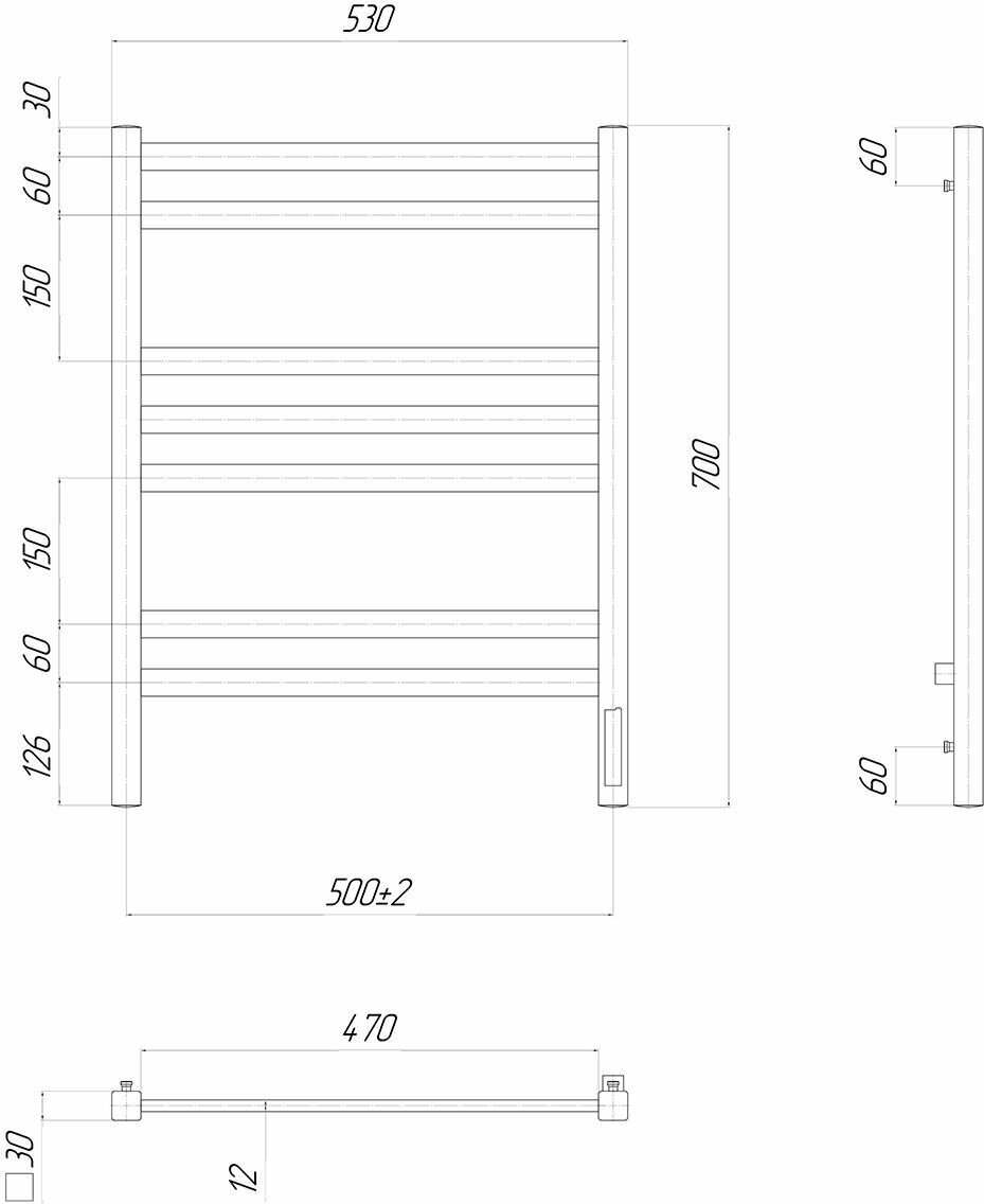 Lemark Полотенцесушитель электрический Lemark Melange П7 500x700, диммер справа LM49707Z (LM49707Z)