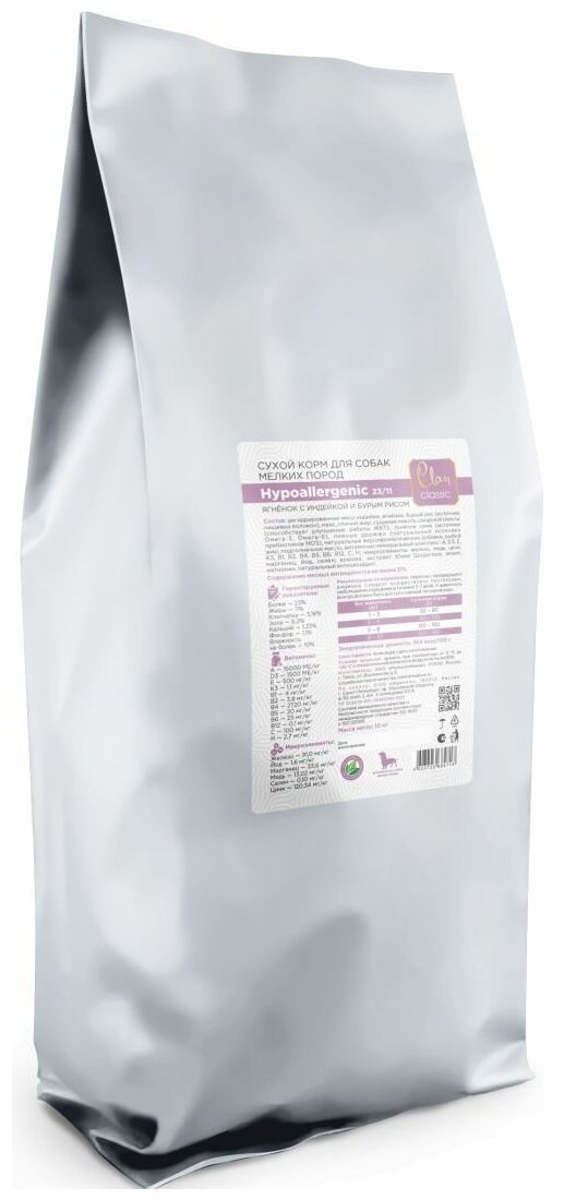 Корм для собак CLAN CLASSIC Hypoallergenic-23/11 Сухой корм для собак мелких пород Ягненок, Индейка и Бурый Рис