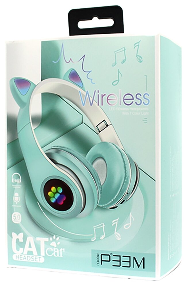Беспроводные наушники Cat Ear P33M с Bluetooth и светящимися кошачьими ушками (зеленый)