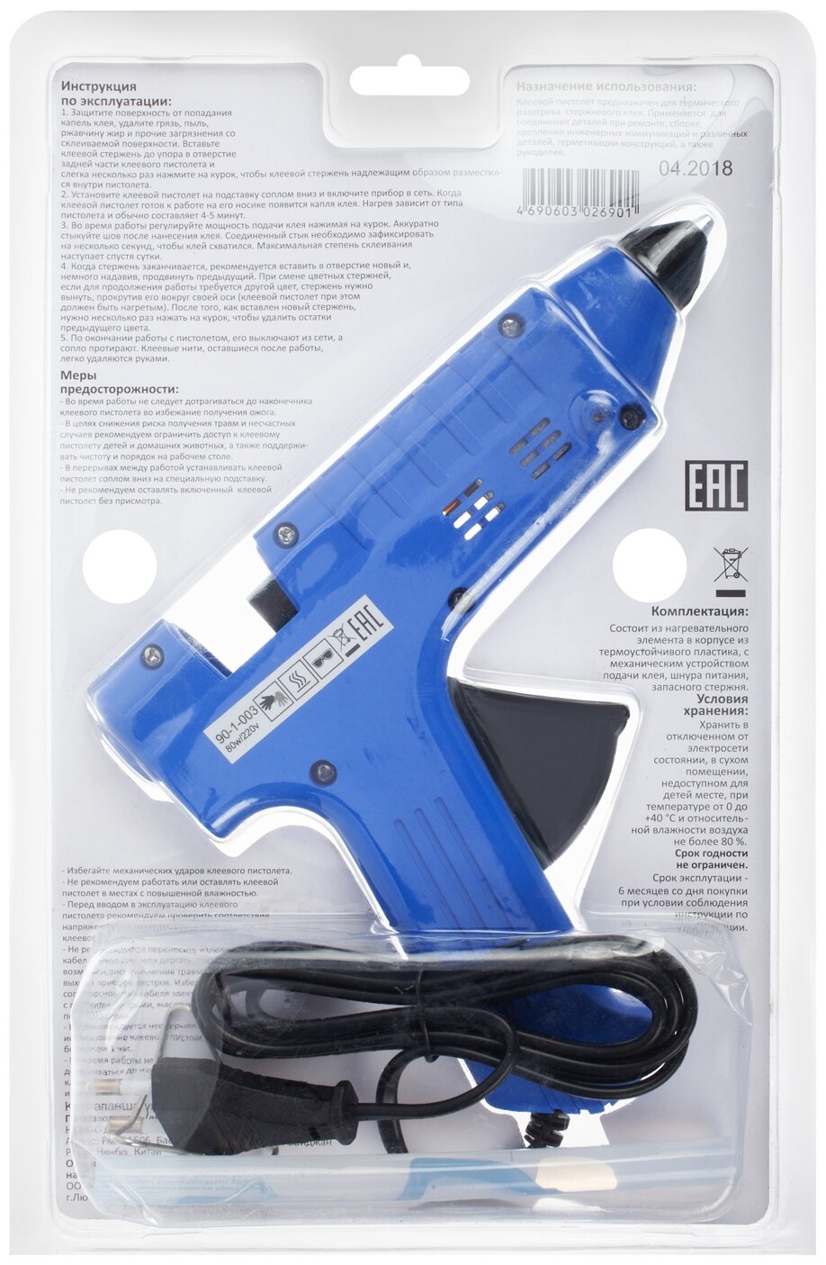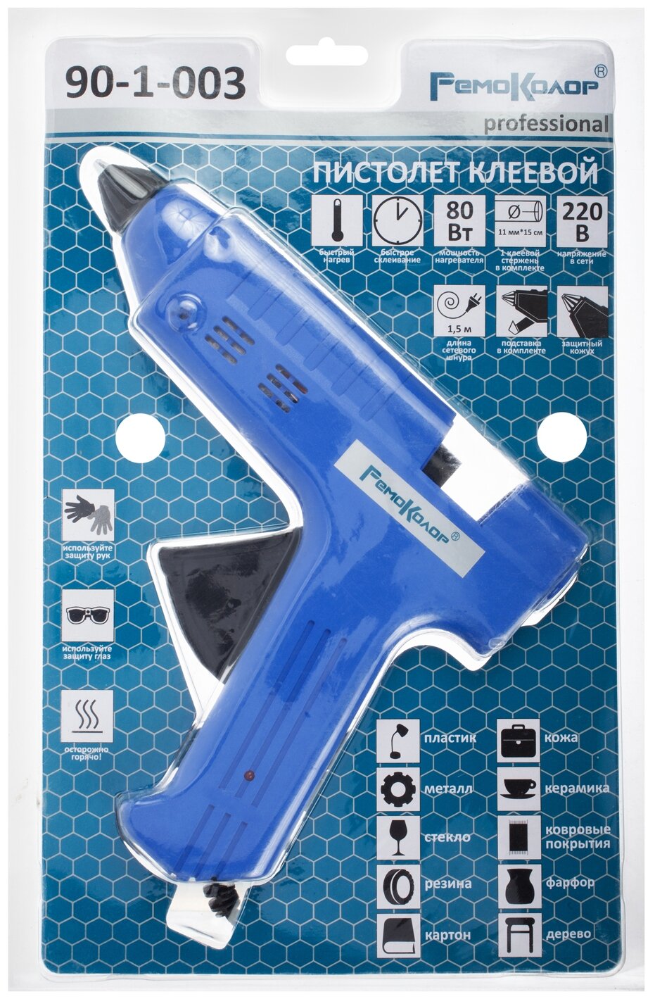 Клеевой пистолет Клеевой пистолет РемоКолор 90-1-003, 80 Вт синий