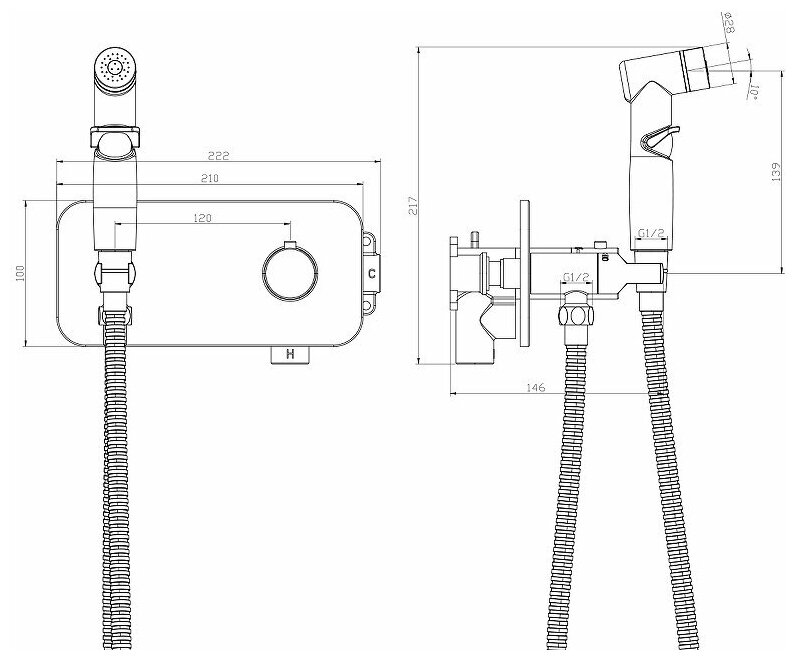 | Ручной душ (душевая лейка) | + (гигиенический) |