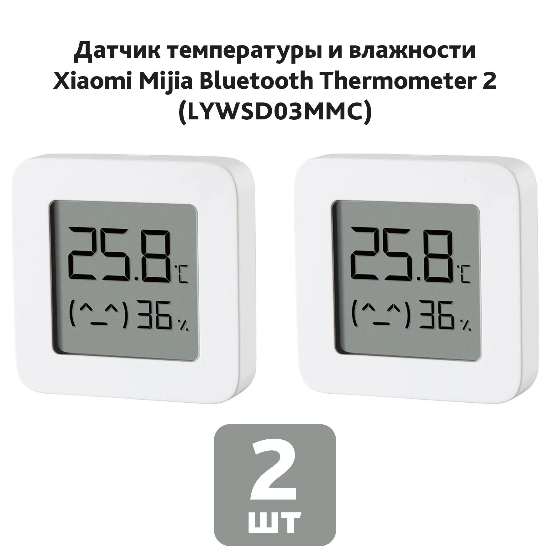 Кондиционеры Датчик температуры и влажности Xiaomi Mijia Bluetooth Thermometer 2 (LYWSD03MMC), 2 шт.