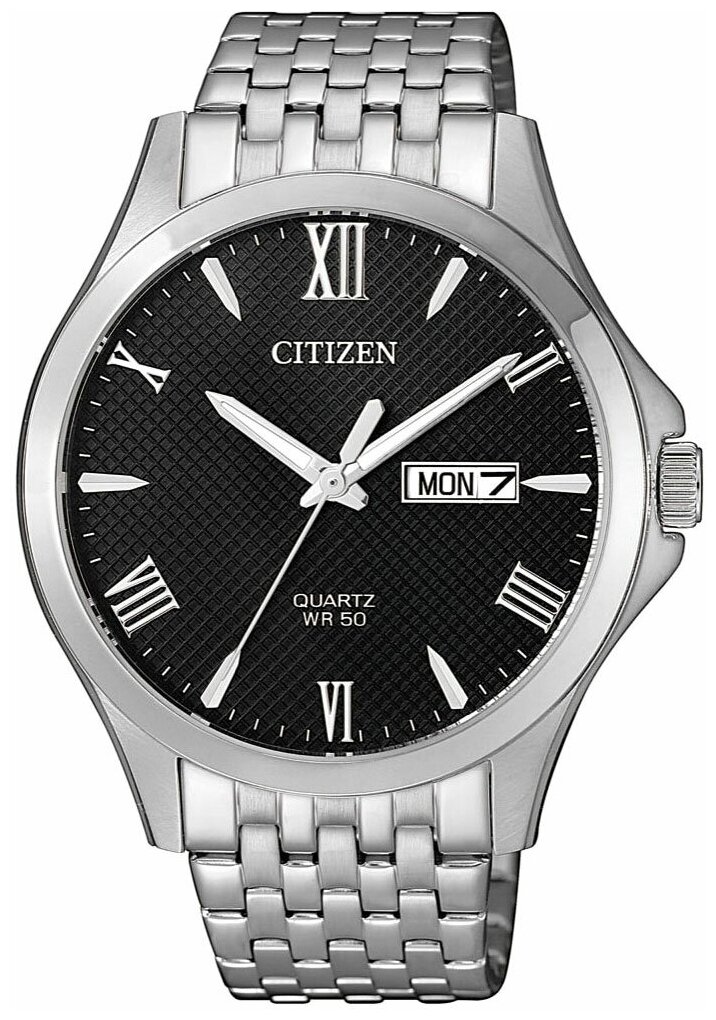 Лучшие цены. • Центральная секундная стрелка. Окошко даты и дня недели. • Точность хода не хуже -10 +15 сек./в месяц. • Минеральное стекло устойчивое к возникновению царапин. • Корпус из высококачественного стального сплава 316L с высокими антикоррозийными свойствами. • Водозащита до 5 АТМ. • Литой браслет из нержавеющей стали. • Браслетный замок с тройным сгибом, растегиваемый одним касанием. Магазины в вашем городе.
