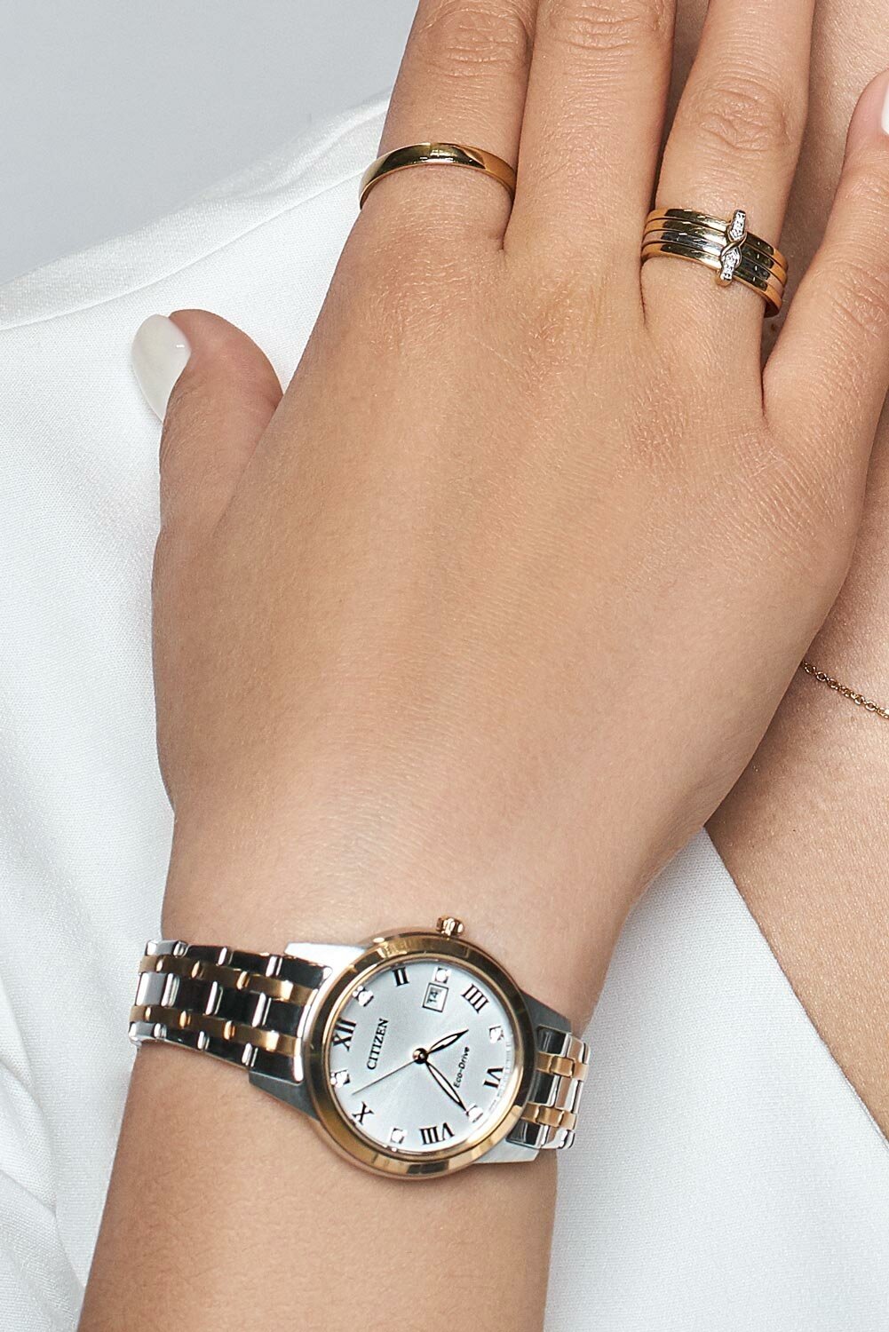Лучшие цены. • Точный кварцевый калибр J710 с системой питания и подзарядки от солнечного света ECO-DRIVE. Запас хода 240 дней • Система ECO-DRIVE - патентованная технология CITIZEN заключающаяся в размещении фотоэлементов скрытых под циферблатом и постоянно подзаряжающих аккумулятор часов. • Функция индикации заряда (EOL). • Индикатор даты. • Точность хода не хуже -/+15 сек./в месяц. • Минеральное стекло устойчивое к царапанию. • Белый циферблат с часовыми метками в виде точек и римских цифр украшен кристаллами. Магазины в вашем городе.