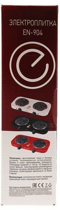 Плитка электрическая ENERGY EN-904R, 2000 Вт, 2 конфорки, красная Energy 4325206 .