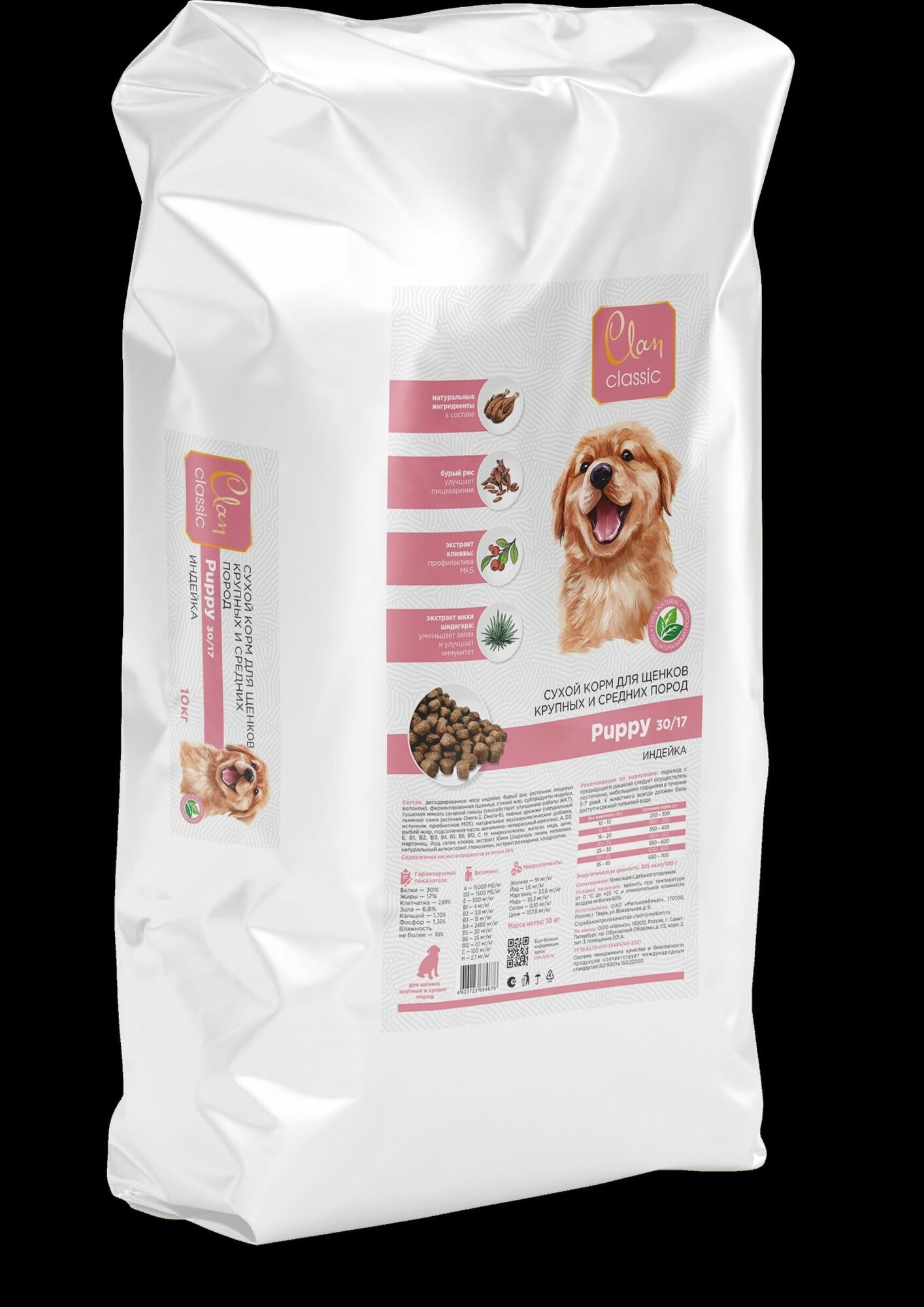 Clan Classic Puppy 30/17 - Сухой корм для щенков средних и крупных пород, с индейкой 130.4.621 10кг