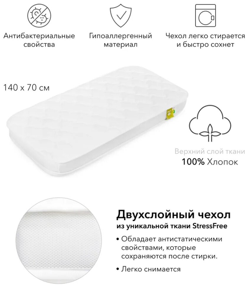 Матрасы 95011, Матрас Happy Baby для детской люльки-кроватки, двусторонний, гипоаллергенный, для кровати MOMMY LUX, со съемным чехлом, 140х70 см, белый