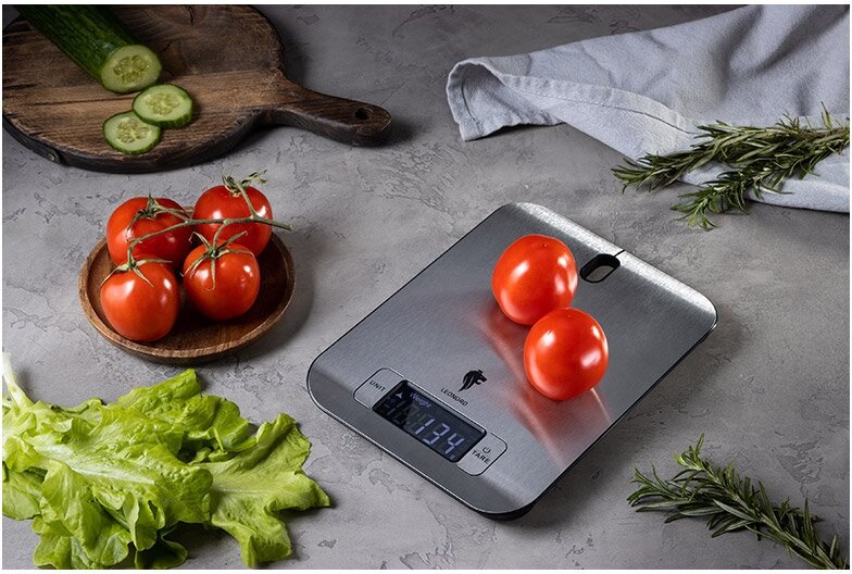Лучшие цены. Кухонные электронные весы Leonord - незаменимый помощник современной хозяйки. Преимущества: - LCD дисплей; - Выбор единиц измерения (грамм, килограмм, унция, фунт); - Сенсорное управление; - Функция «Тара»; - Автоотключение; - Индикатор перегрузки и заряда батарейки. Предназначены для взвешивания продуктов питания. Максимальный вес: 5 кг; Цена деления: 1 г; Размер платформы: 16 x 22 см; Материал платформы: металл; Элемент питания: 2 x ААА (входят в комплект). Магазины в вашем городе.