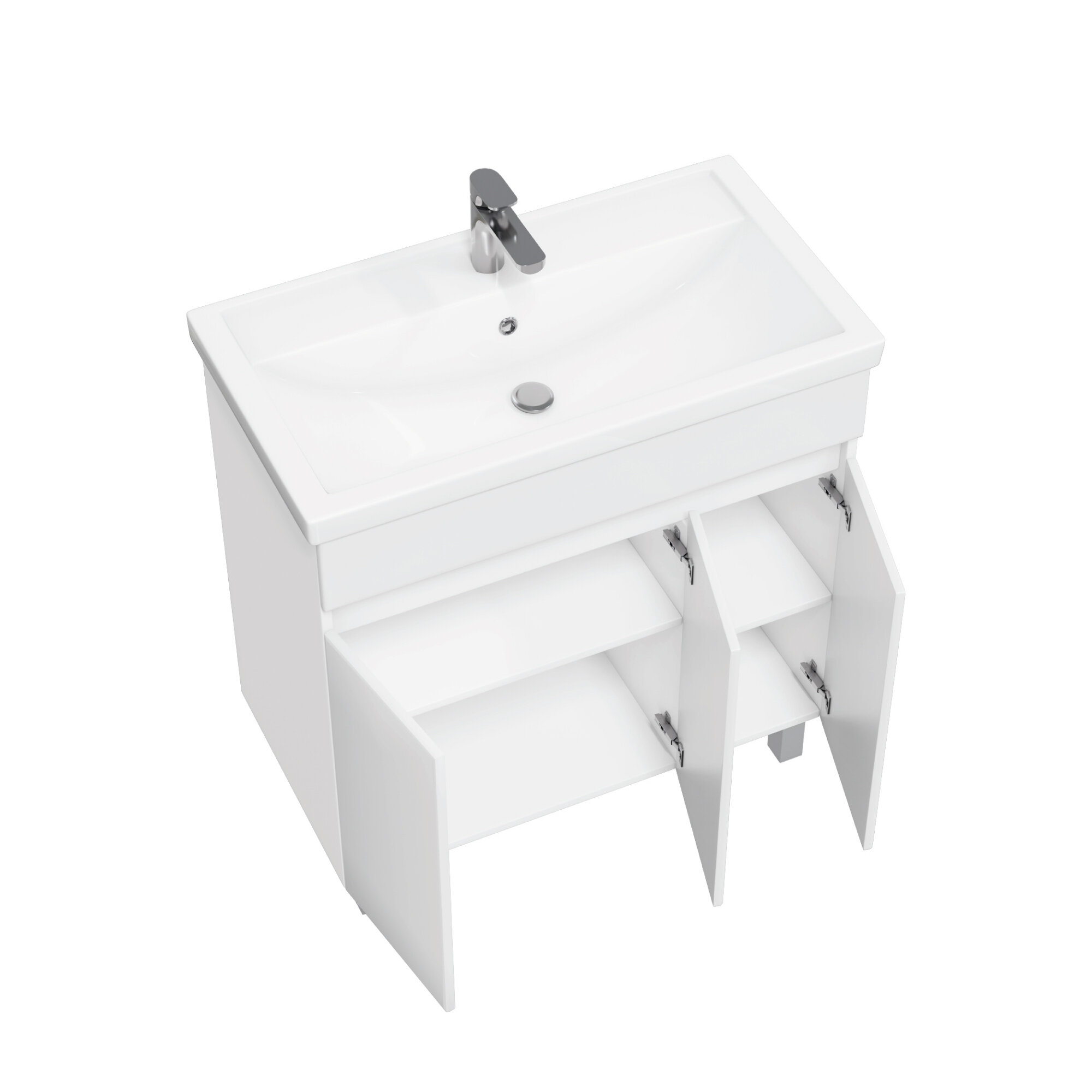 Тумбы под умывальник Тумба напольная SanStar Квадро 80 Без раковины для ванной комнаты, белая