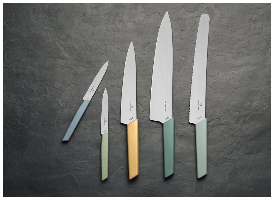 Лучшие цены. Нож для овощей и фруктов VICTORINOX Swiss Modern, прямое лезвие из нержавеющей стали 10 см, рукоять из синтетического материала цвета "зелёный мох". Где настоящая красота встречается с истинным качеством: познакомьтесь с нашей линейкой кухонных ножей Swiss Modern. В новой коллекции Swiss Modern мы заменили традиционную древесину ореха на супер-элегантные модные ручки из синтетического материала. Магазины в вашем городе.