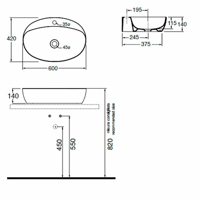 | Расположение умывальника | по центру |