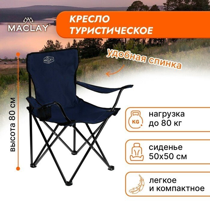 Лучшие цены. Кресло туристическое с подстаканником, р. 50 х 50 х 80 см, до 80 кг, цвет синий Складное кресло пригодится на рыбалке, в походе и на пикнике. С ним вы не устанете следить за углями, поплавком и заниматься полевой кухней. Сложите изделие и уберите его в багажник автомобиля — в таком виде кресло не займёт много места. Для удобной транспортировки используйте сумку-чехол, она защитит от загрязнений и нежелательных повреждений. Максимальная нагрузка - 100 кг. -Вес: 1800 г. Магазины в вашем городе.