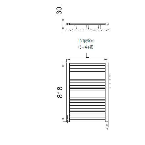 Полотенцесушители Irsap Ares Полотенцесушитель электрический 580x818x30мм (15 трубок-2 промежутка), мощность: 400 ватт, с регулятором, провод: 1200мм, цвет: хром