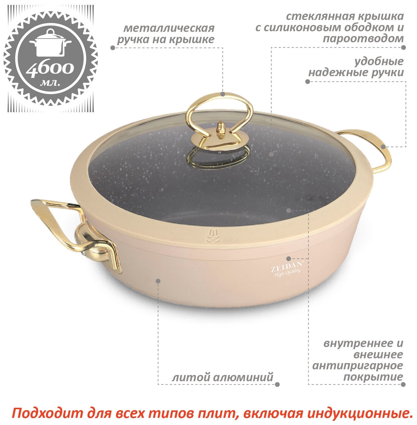 Сковородки Жаровня с крышкой Zeidan Latte сковорода для всех видов плит 4,6 л 28 см, бежевая