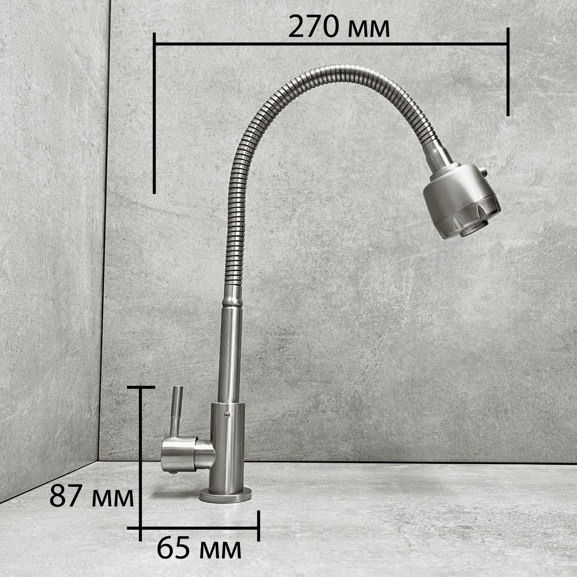 Смеситель Моно кран для кухни Haiba HB4181 гибкий излив с лейкой , (2 режима) и гайкой (нержавейка), только для одной воды .