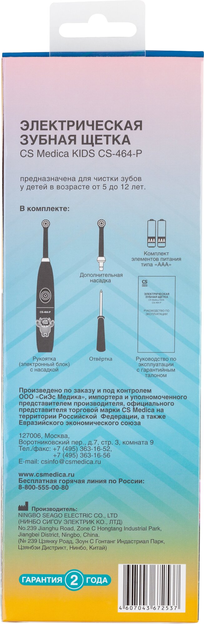 Зубная щётка электрическая CS MEDICA KIDS CS-464-P, персиковая