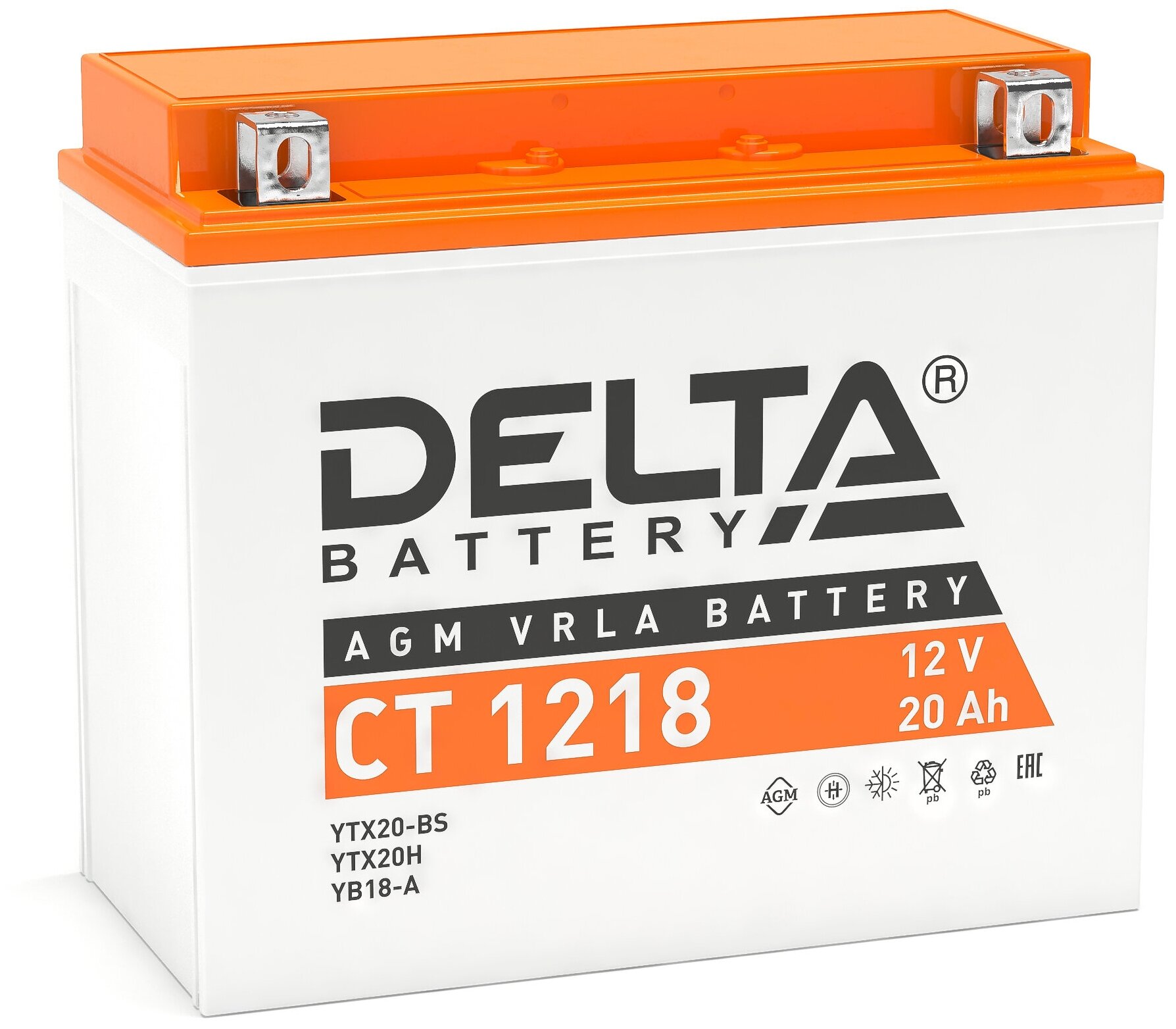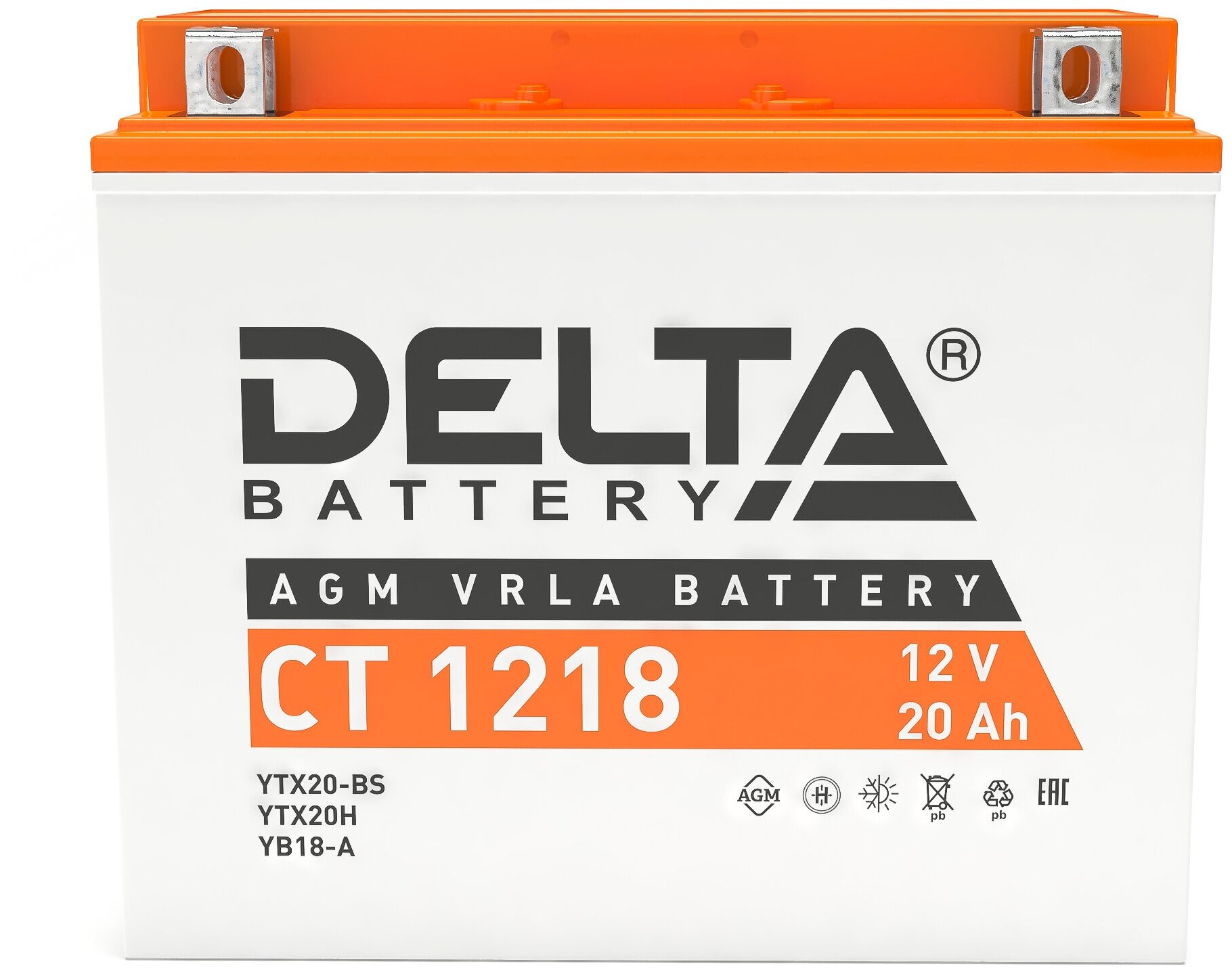 Аккумулятор мото DELTA AGM CT 1218 20Ah 270A прямая полярность (176х87х154) мотоцикла