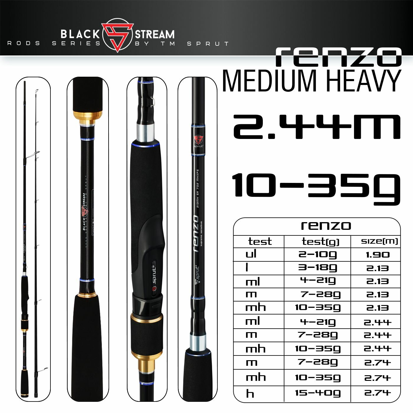 Удилище Спиннинг Sprut Renzo 244MH (Medium Heavy/Lure:10-35g/Line:8-20lb)