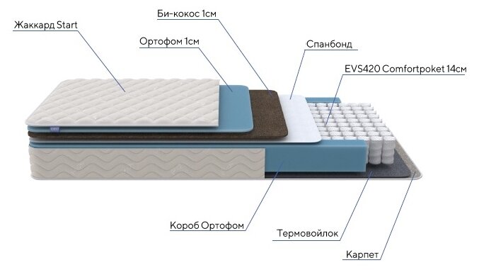 Матрас ProSon FIRST 500 Flat M (Жаккард синтетический (Эко 100)/Карпет) 140x200 12 210 ₽ Подробнее