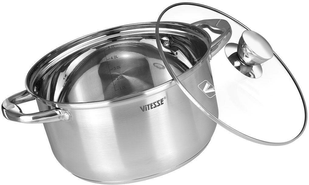 Лучшие цены. Бренд - ViTESSE Диаметр, см - 24 Объем, л - 5,9 Материал корпуса - высококачественная нержавеющая сталь Дно - многослойное термоаккумулирующее Полировка - комбинированная Внутренняя градуировка - есть Крышка - из термостойкого стекла Ручки - из высококачественной нержавеющей стали Способ крепления ручек - на заклепках Упаковка - подарочная цветная коробка Размер коробки, см - 28,00x27,00x14,50 Нагрев индукционные конфорки газовые конфорки стеклокерамические конфорки галогенные конфорки электрические. Магазины в вашем городе.