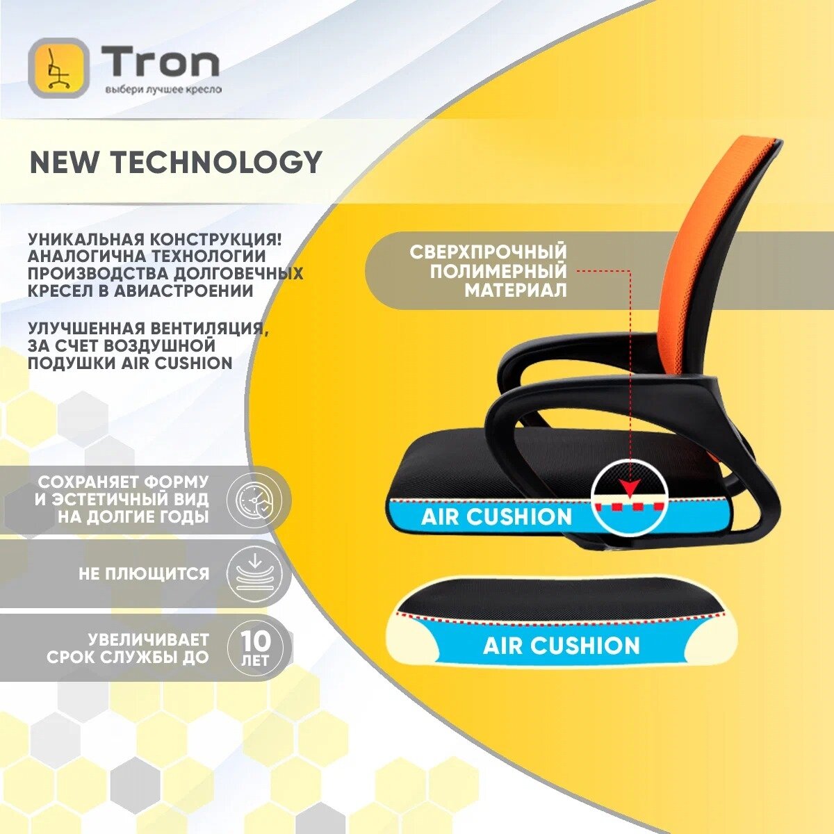 Кресло компьютерное, офисное Tron A1-695 Standard, сетка, цвет: оранжевый