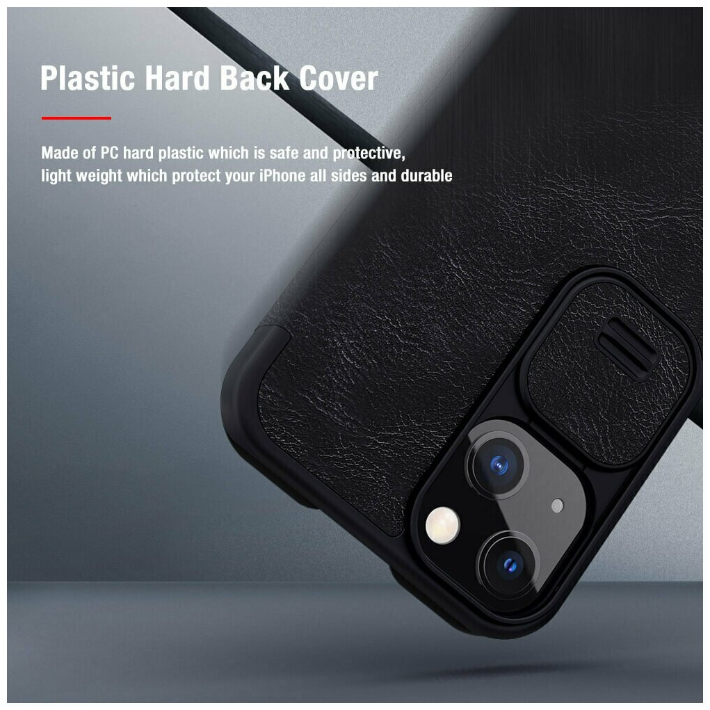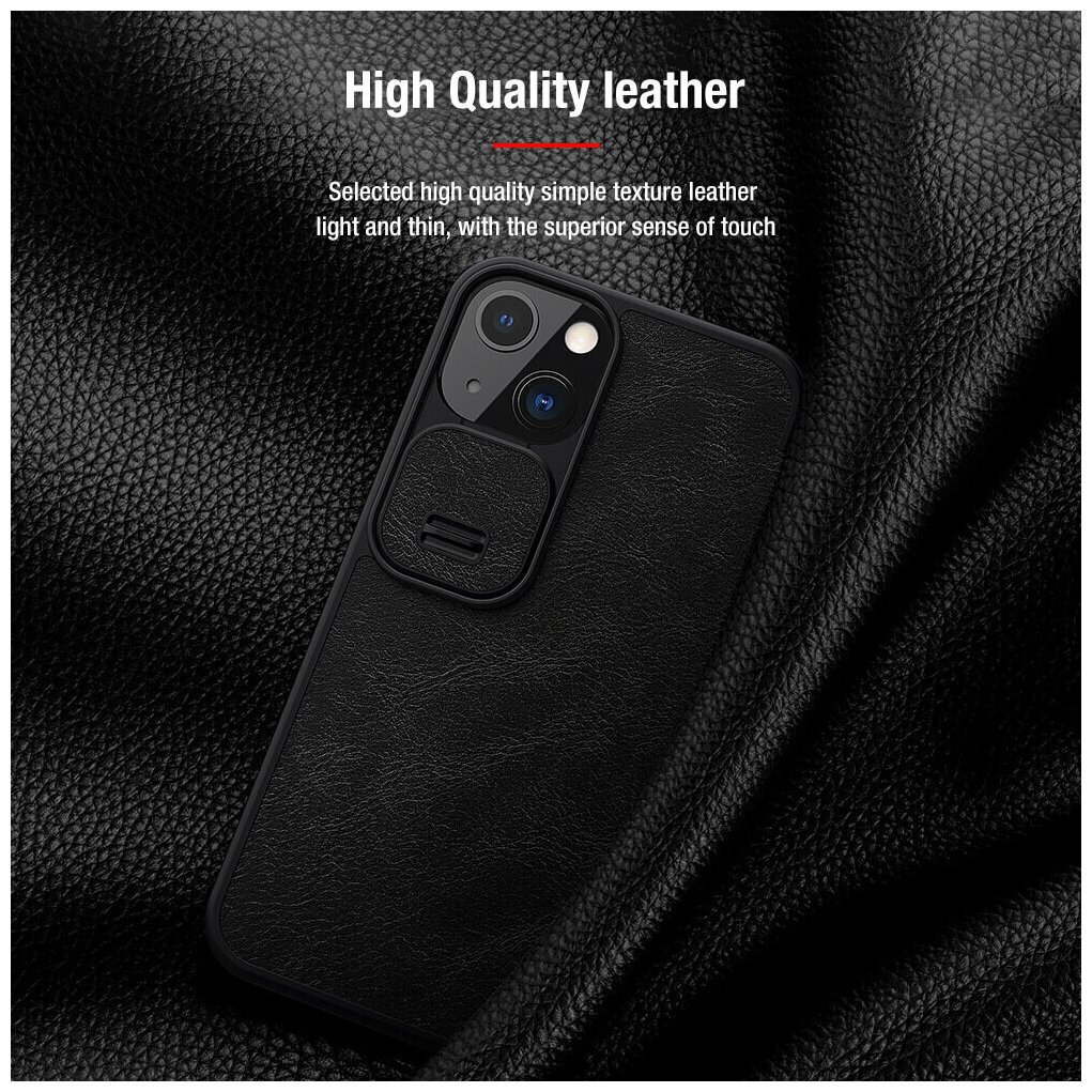 Чехол Кожаный чехол-книжка с защитой камеры Nillkin Qin Pro для Apple iPhone 13, черный
