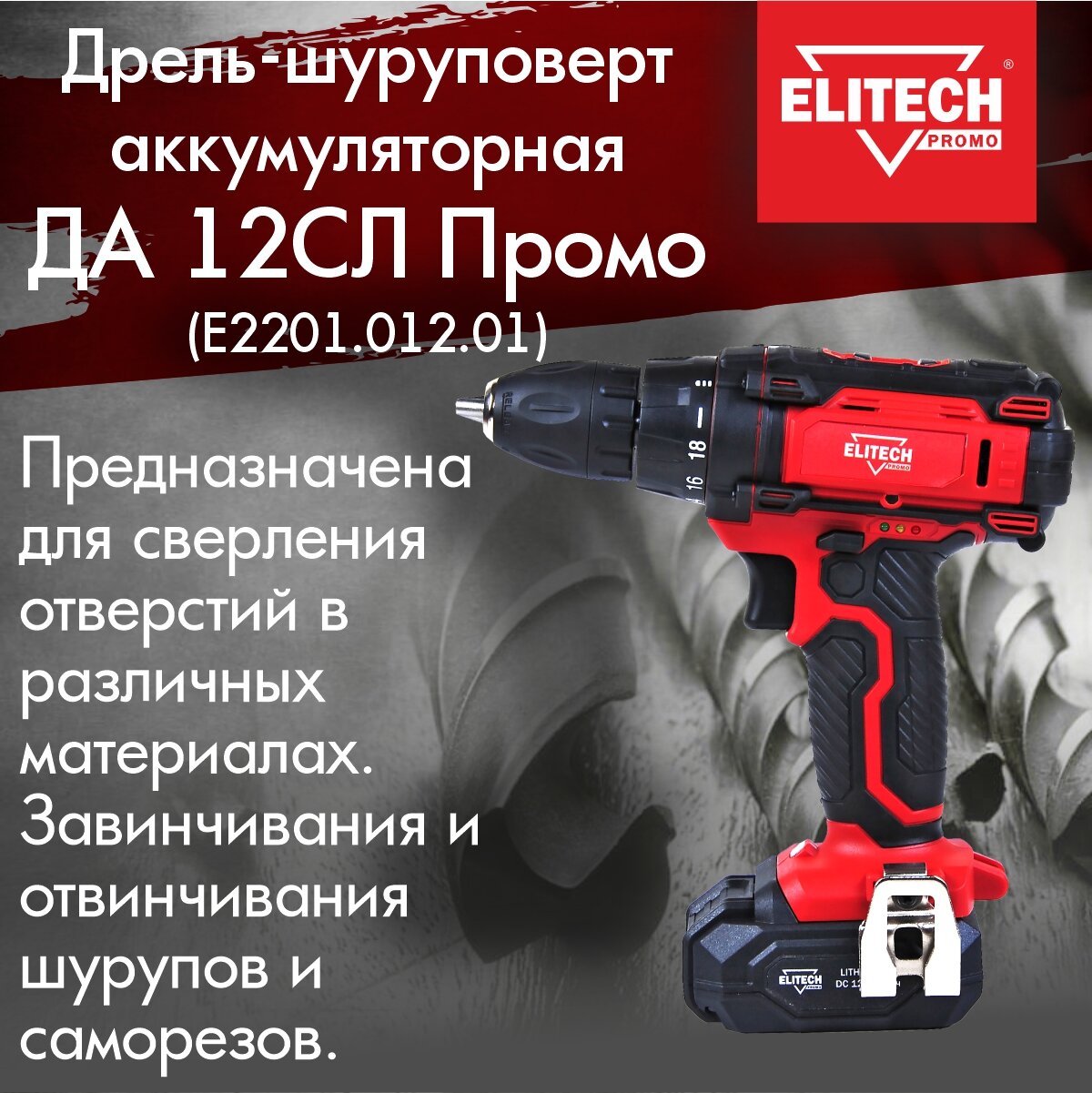 Аккумуляторная дрель-шуруповерт ELITECH ДА 12СЛ Промо (E2201.012.01)
