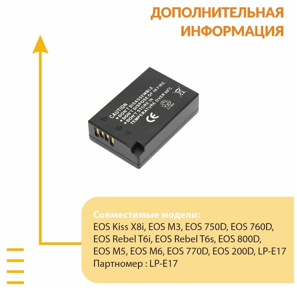 Лучшие цены. Аккумулятор подходит к следующим моделям Canon: EOS Kiss X8i EOS M3 EOS 750D EOS 760D EOS Rebel T6i EOS Rebel T6s EOS 800D EOS M5 EOS M6 EOS 770D EOS 200D. Магазины в вашем городе.