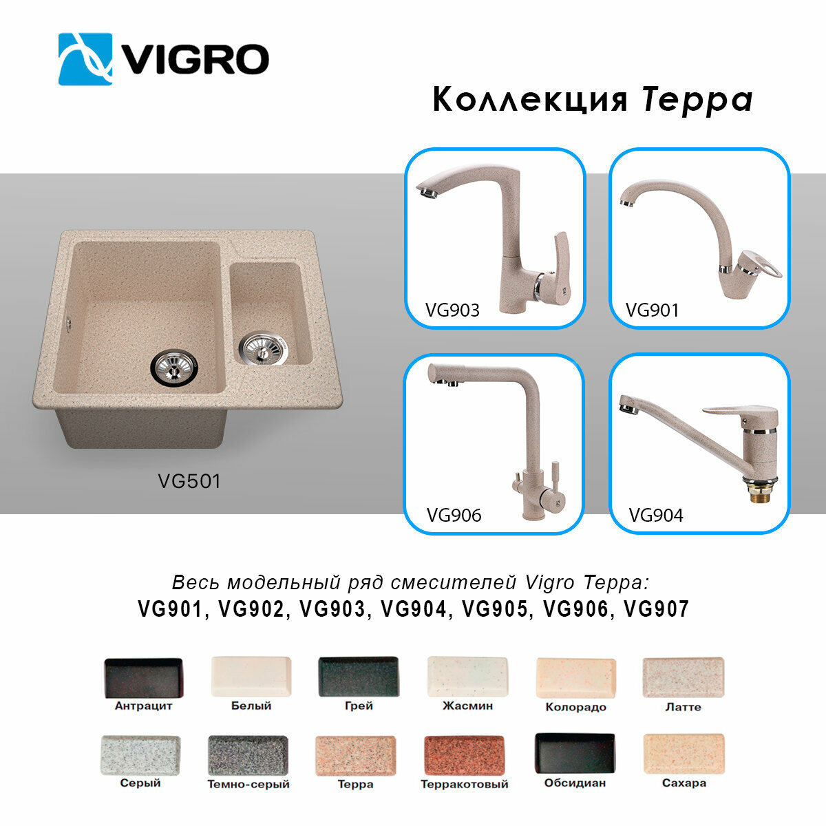 VIGRO мойка для кухни VG501 жасмин