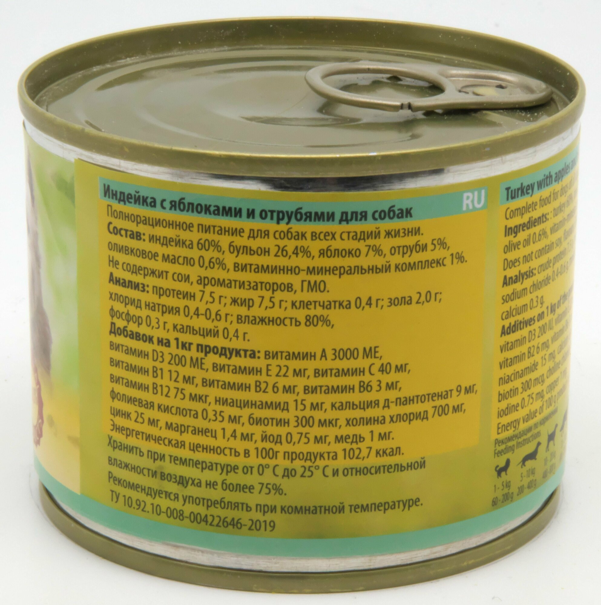 Консервы для собак Беркли 200г №7 индейка с яблоками и отрубями (4 банки)