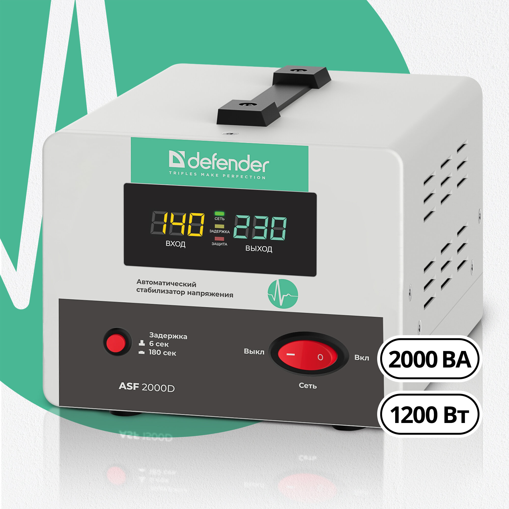 Стабилизатор напряжения Defender ASF 2000D напольный 1200 Вт, 2 розетки
